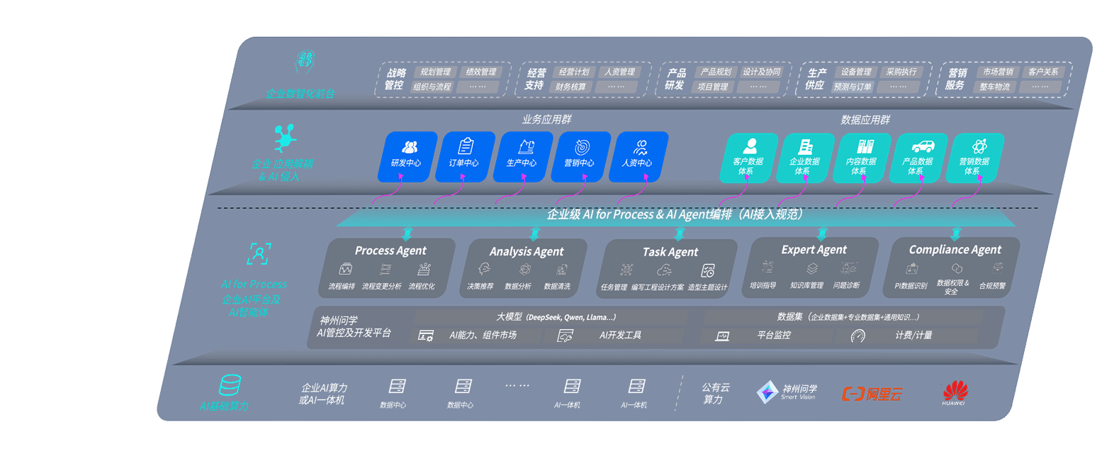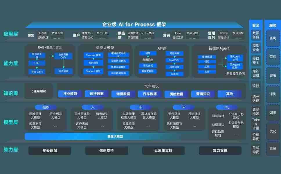 端到端的一站式AI工作空间深度融合了从企业战略规划到日常经营的全流程业务板块,,,,定向解决车企内部领域多、、部门多、、、链条长、、、、场景碎片化等难题,,,支持车企快速构建以AI为核心的生产力写作体系,,,,实现任务执行与AI能力的无缝集成与交互